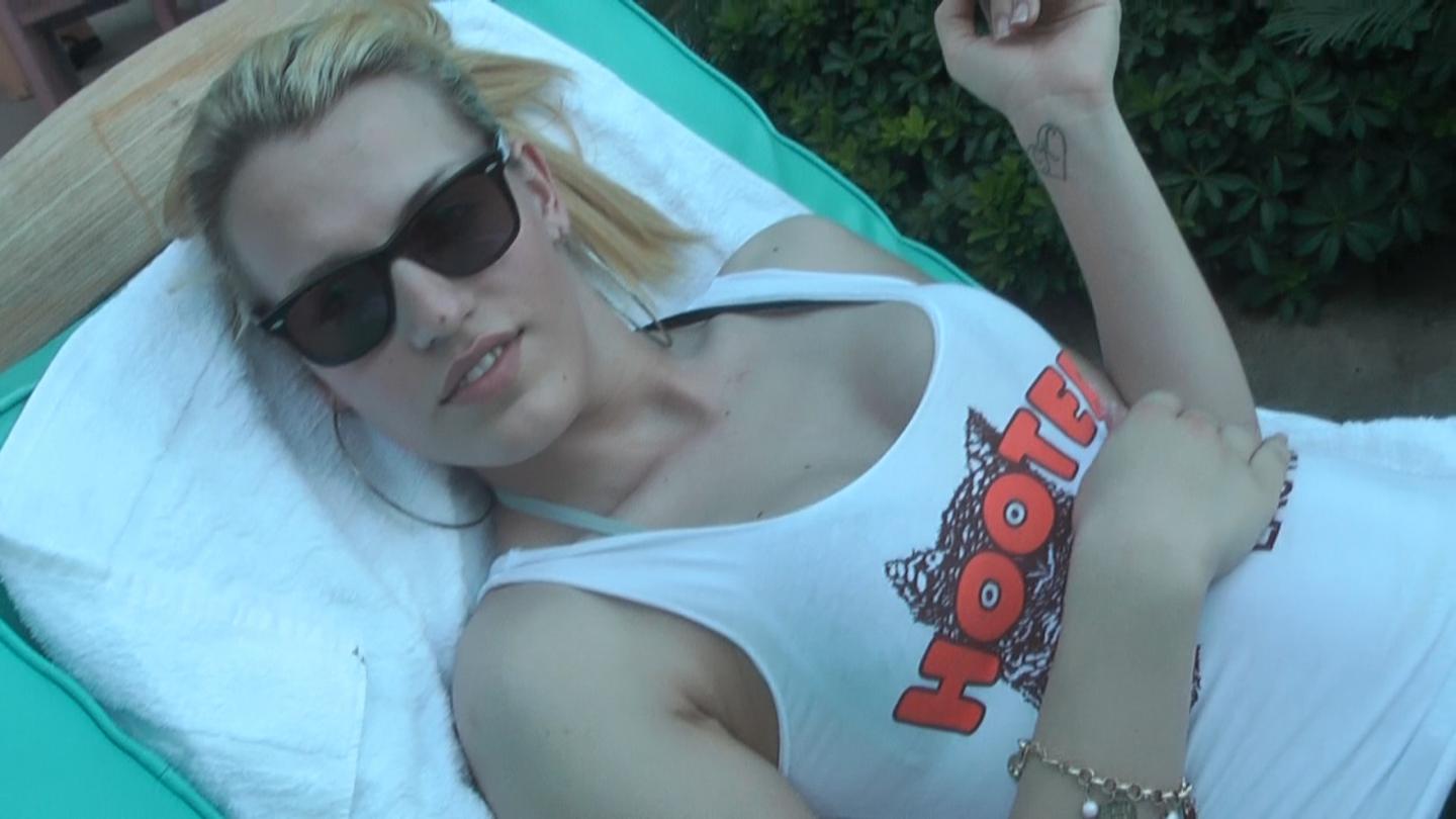 Unsere Sie ist eine hübsche Blondine mit sexy Brüsten und einem schönen Penis. Ja sie ist Halb-Transexuell. Also Hormone, Brüste und alles sieht weiblich aus, aber einen Schwanz hat sie noch. Unserer Meinung nach einfach eine geile Mischung und es gibt ja viele denen dies gefällt. Also wer Bi ist, kann sich von ihr natürlich auch mal von hinten rannehmen lasssen. Aber natürlich nur wenn die Sympathie stimmt.